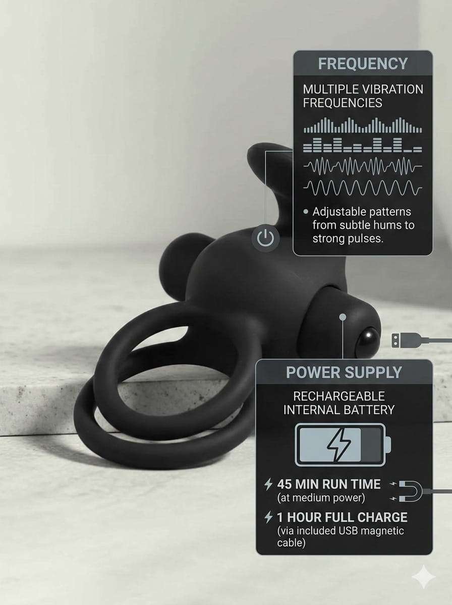 The Male Vibration Ring is a wearable adult toy designed for anyone with a penis and their partner(s). This versatile ring offers multiple vibration settings that enhance endurance, stimulation, and shared pleasure. Whether exploring intimacy solo or with a partner, it brings a new level of enjoyment to foreplay and bedroom play.
