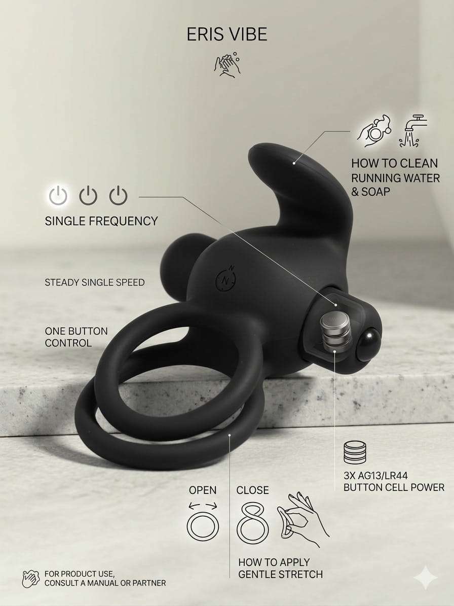 Begin by applying a water-based lubricant to the penis and gently slide the ring into place. Adjust the vibration mode according to preference. Learn more about safe usage and techniques from these authoritative guides: